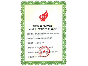 國家火炬計劃產業化示范項目證書